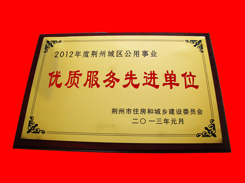 2012年度荆州城区公用事业优质服务先进单位(住建委)