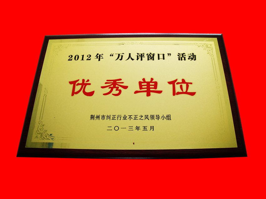 • 2012年“万人评窗口”活动优秀单位