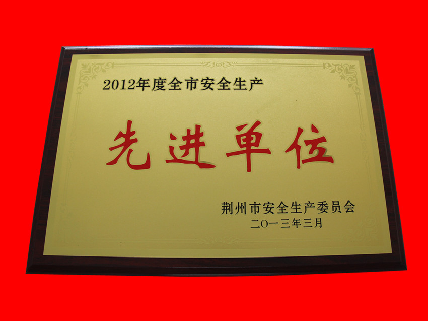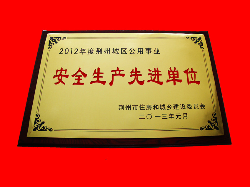 2012年度荆州城区公用事业安全生产先进单位(住建委)