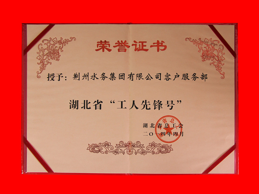 湖北省工人先锋号证书