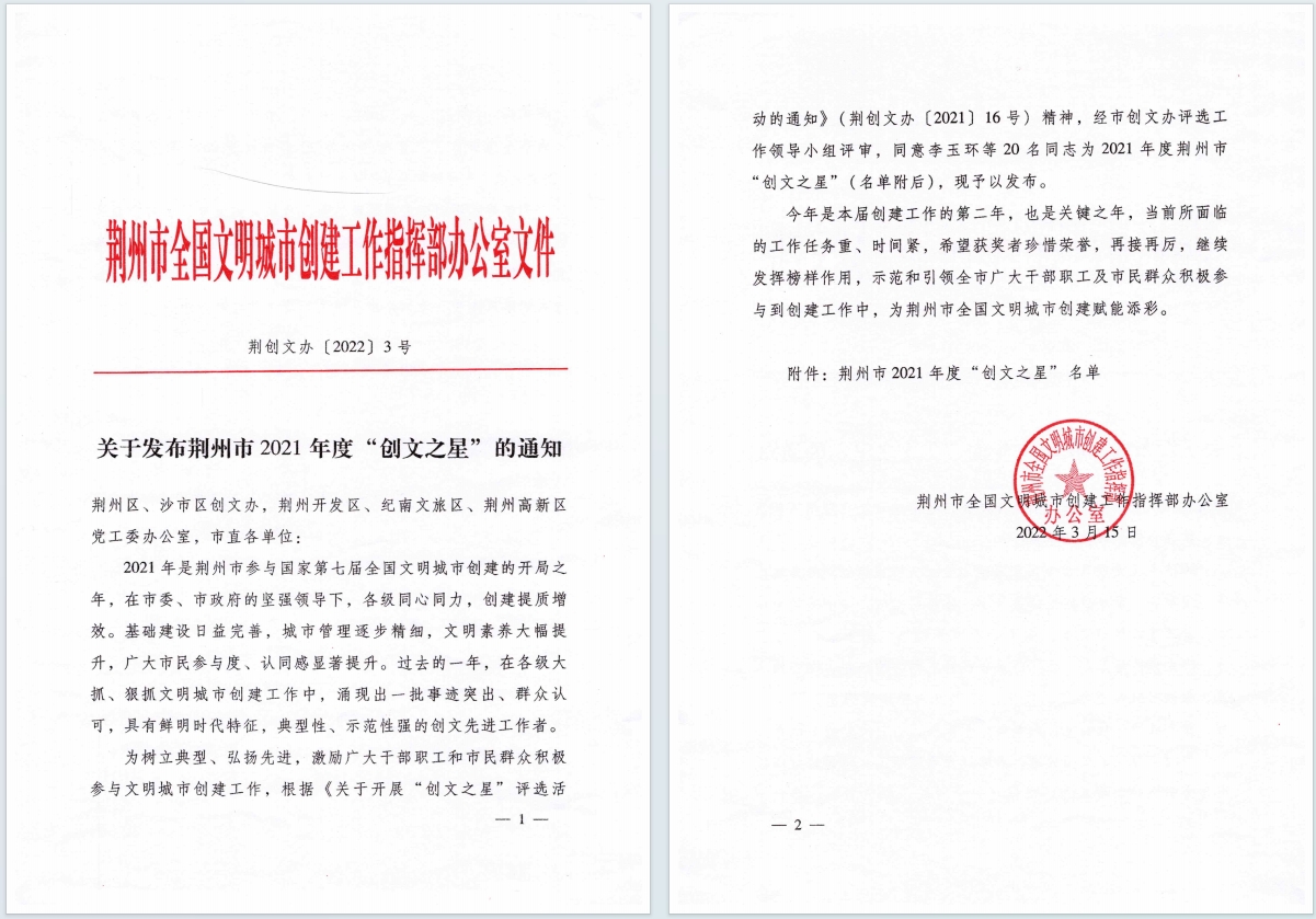 湖北鼎鑫源工程有限公司喜获第21届“全国青年文明号”荣誉称号