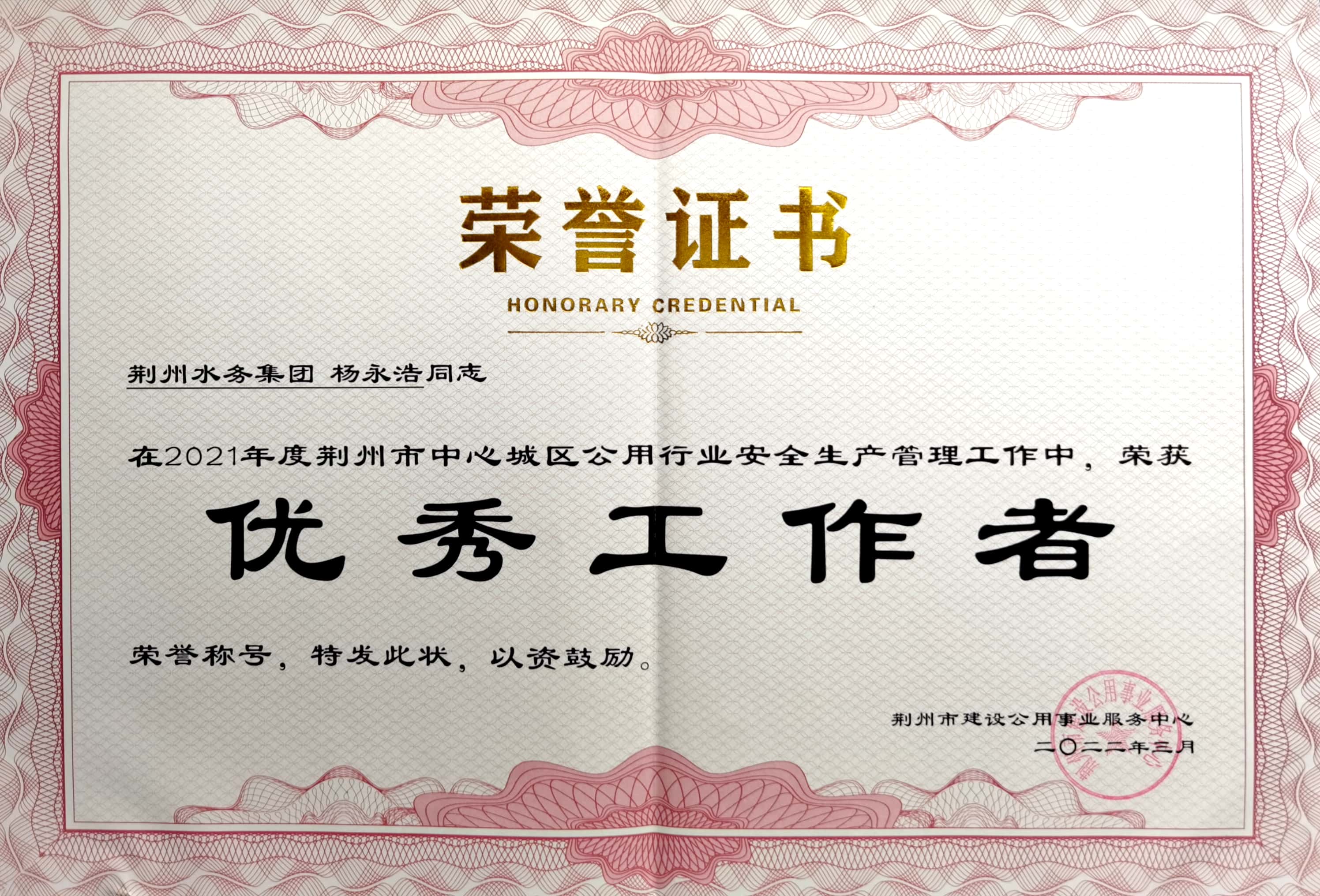2021年度公用行业安全生产 优秀工作者(杨永浩)