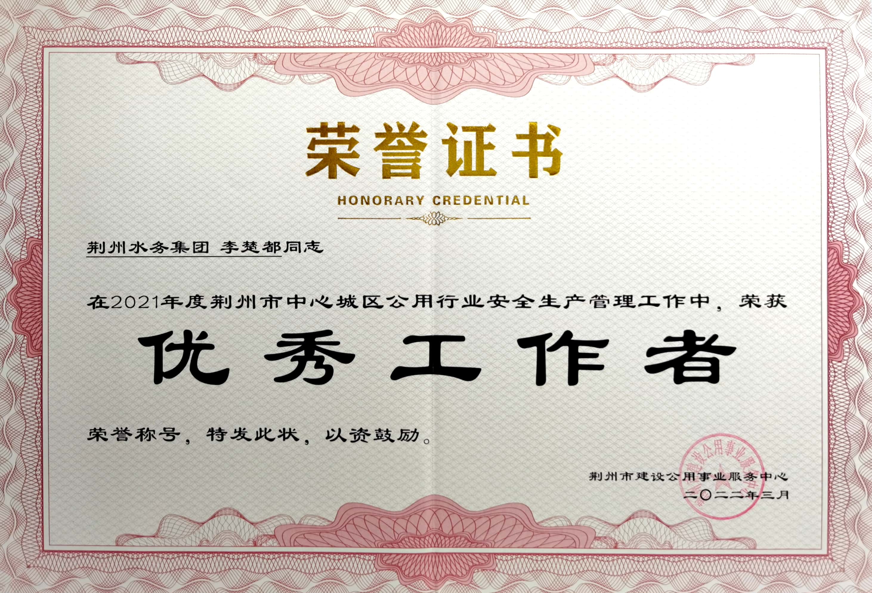 2021年度公用行业安全生产 优秀工作者(李楚都)