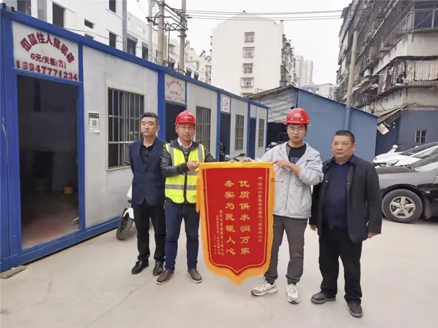 10月27日,荊州開發(fā)區(qū)聯(lián)合街道玉橋社區(qū)老舊小區(qū)改造項目部為湖北鼎鑫源工程有限公司送來了一面印有“優(yōu)質(zhì)供水潤萬家,務實為民暖人心”的燙金錦旗,對鼎鑫源工程公司在玉橋社區(qū)老舊小區(qū)改造項目中所做努力表達謝意。