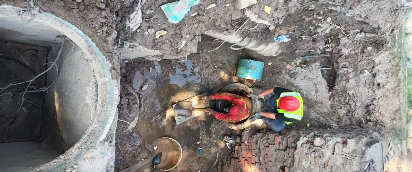 2024年8月15日,沙岑路穿越地方鐵路段φ600供水管網(wǎng)改造工程施工現(xiàn)場人聲鼎沸,非開挖管道內(nèi)襯法施工新工藝正在進行中。